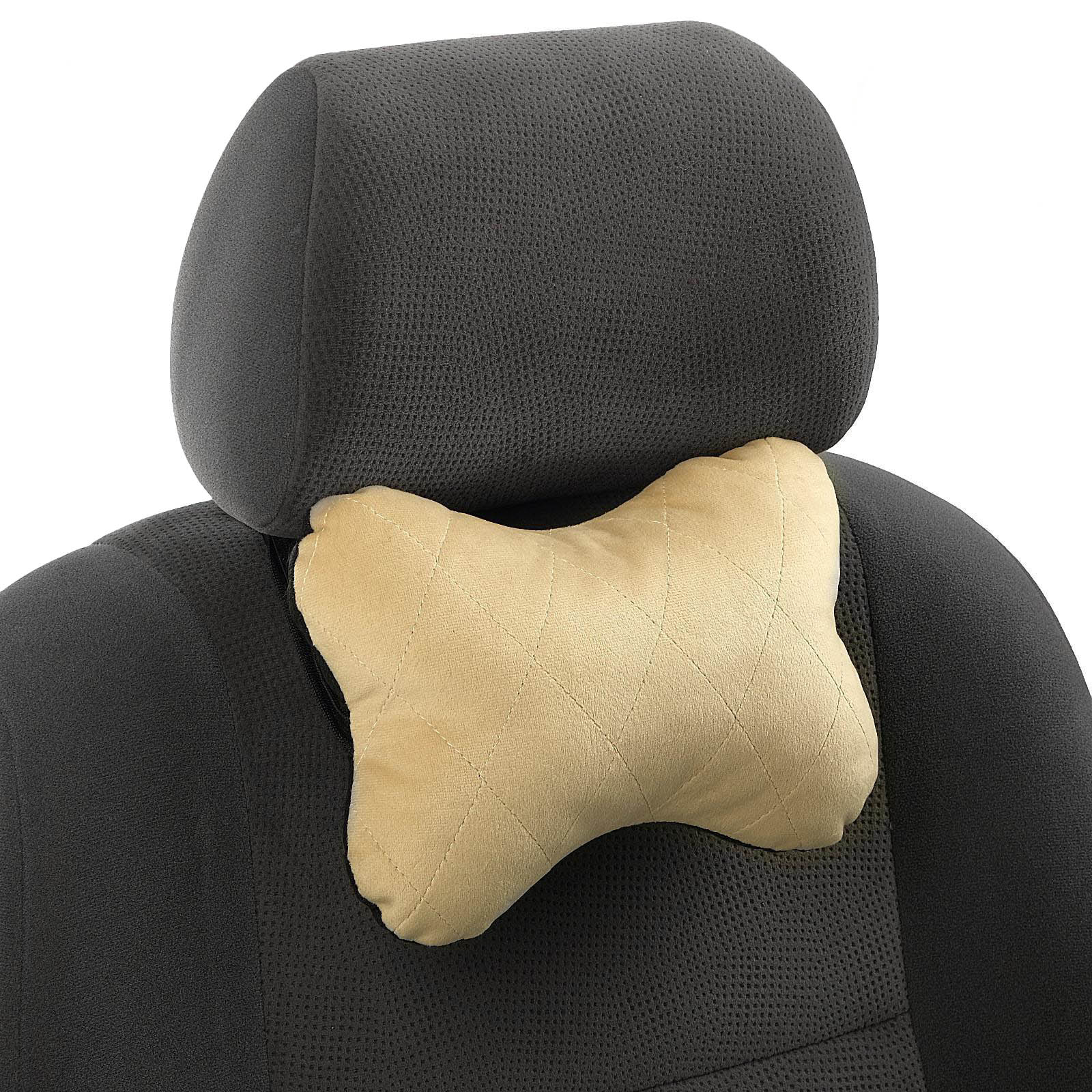 Подушка автомобильная косточка, на подголовник, велюр, бежевый, ромб, 16х24 см 5296765