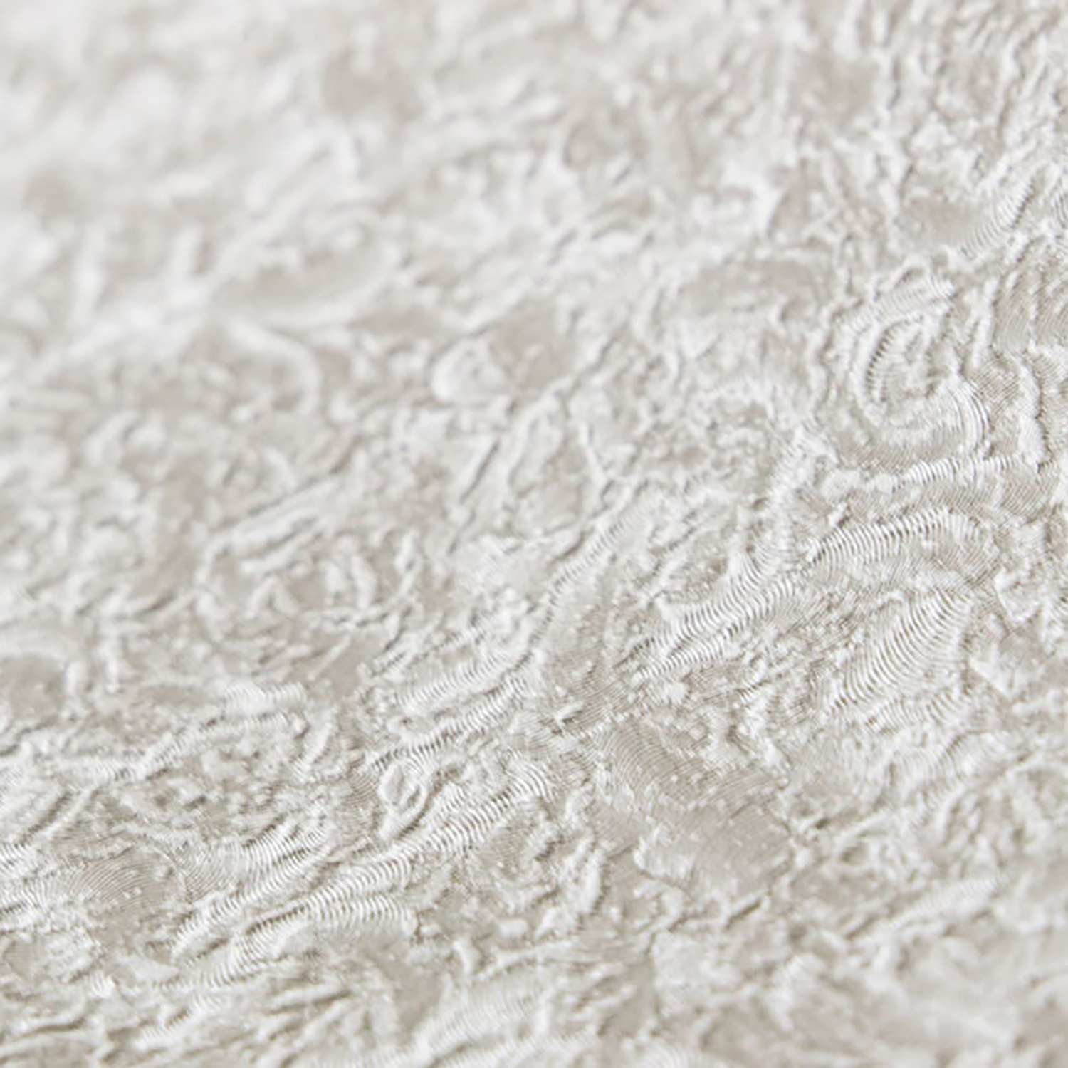 Продуманный текстурный рисунок напоминает каракулевый мех. Нежный перламутр прекрасно подчеркивает рельефность обоев и наполняет пространство мягким сиянием.
