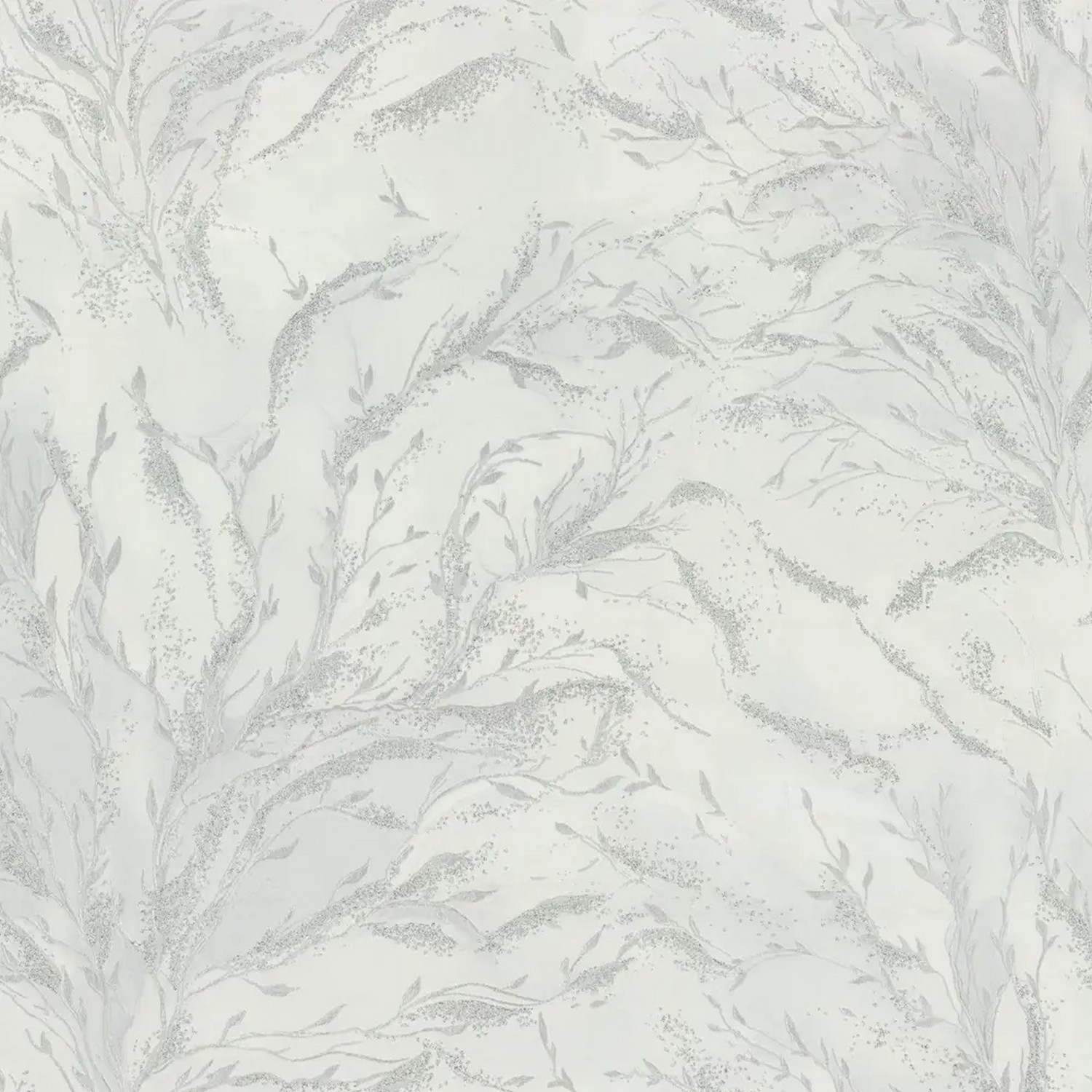 В мотиве представлены крупные листья папоротника. Хаотично раскинувшиеся на полотне, они переплетаются и накладываются друг на друга, образуя многоуровневый рисунок, благодаря чему вся композиция выглядит объемной. Разностороннее тиснение придает растениям естественную природную текстуру. Их стебли выделены контрастным оттенком, а прожилки дополнительно подчеркнуты искрящимся разноцветным глиттером. Создается ощущение, будто капли росы на листьях играют и блестят под ярким солнышком, а вкрапления металлика и переливающегося перламутра усиливают этот эффект.
