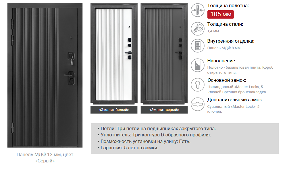 Дверь входная 2050х960х105 мм Форпост Спарта, правая, эмалит серый