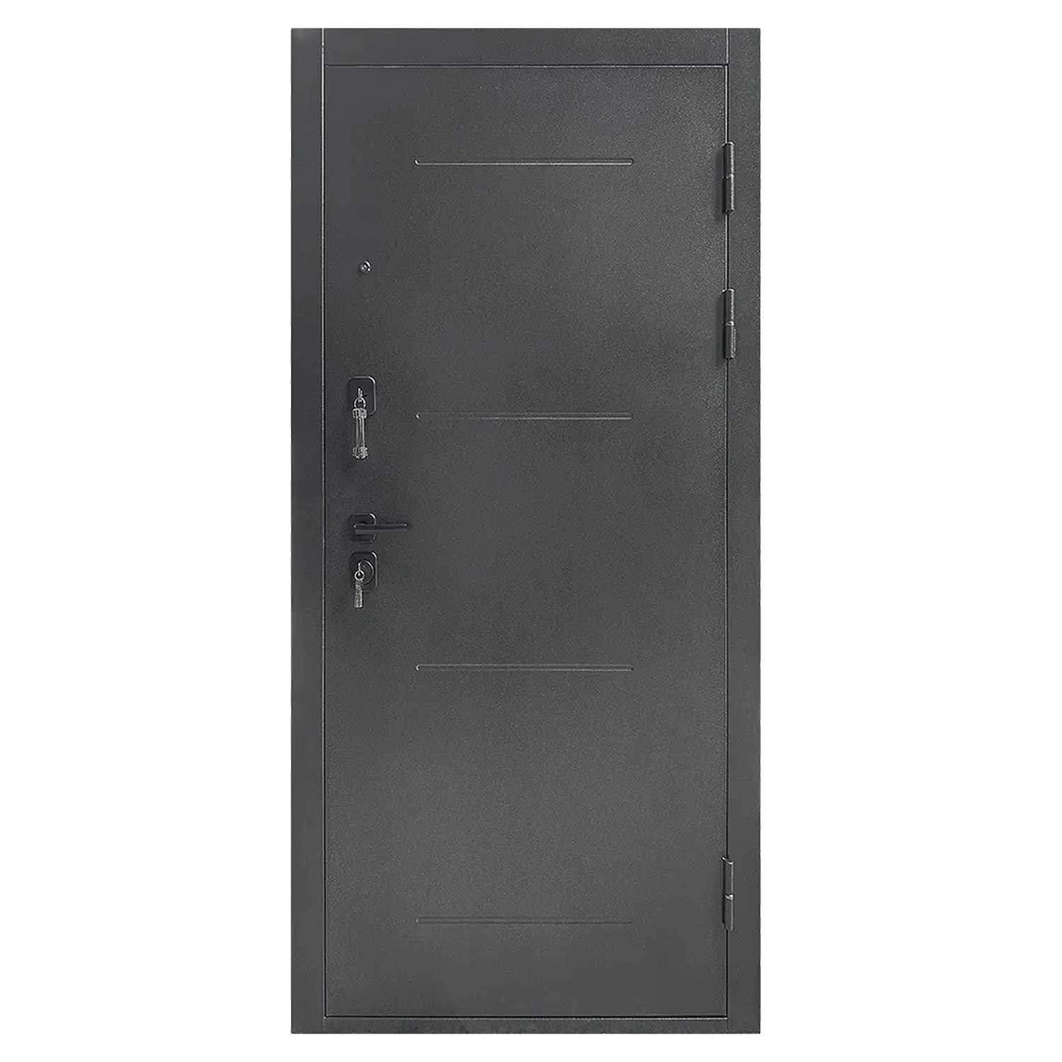 Дверное полотно, дверная коробка, замок основной, замок дополнительный, петли - 3 шт., ручки, наклад |