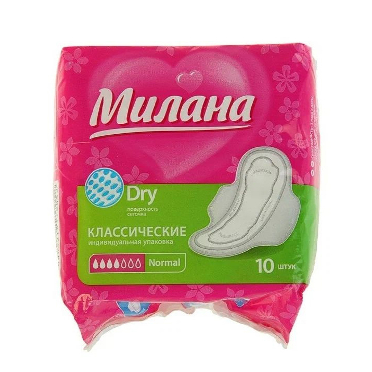 Прокладки МИЛАНА Классик Драй нормал.10шт малиново-зеленый *35