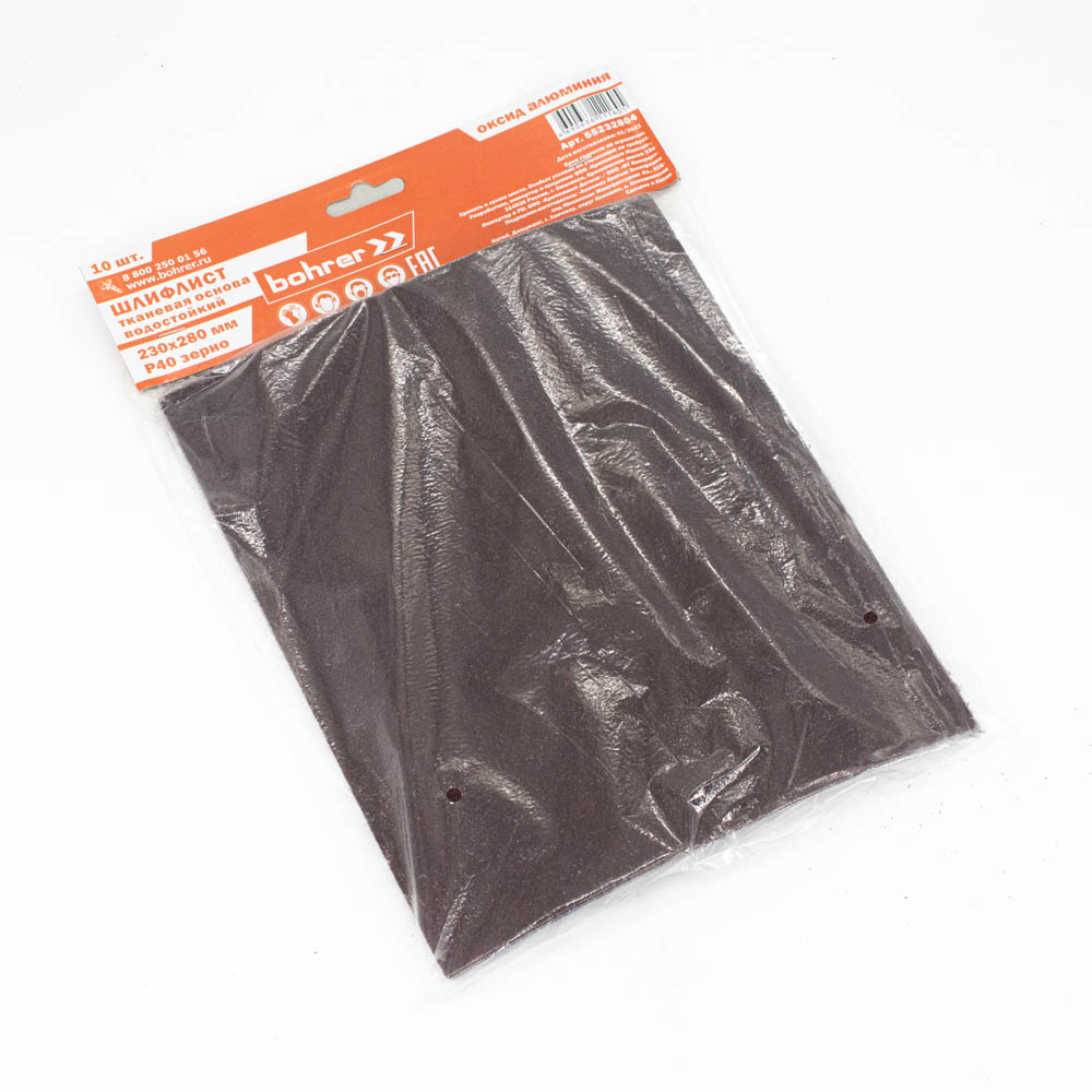 Шлифшкурка 230*280 зерно 40 оксид алюминия водостойкая тканевая (10шт) арт.55232804 Bohrer *1/50