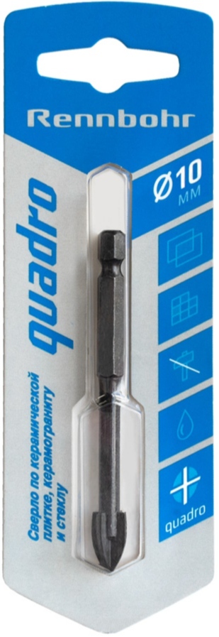 Сверло по стеклу/керамике 10,0мм (1шт) RB Quadro 4 грани (арт.676110) *6/24