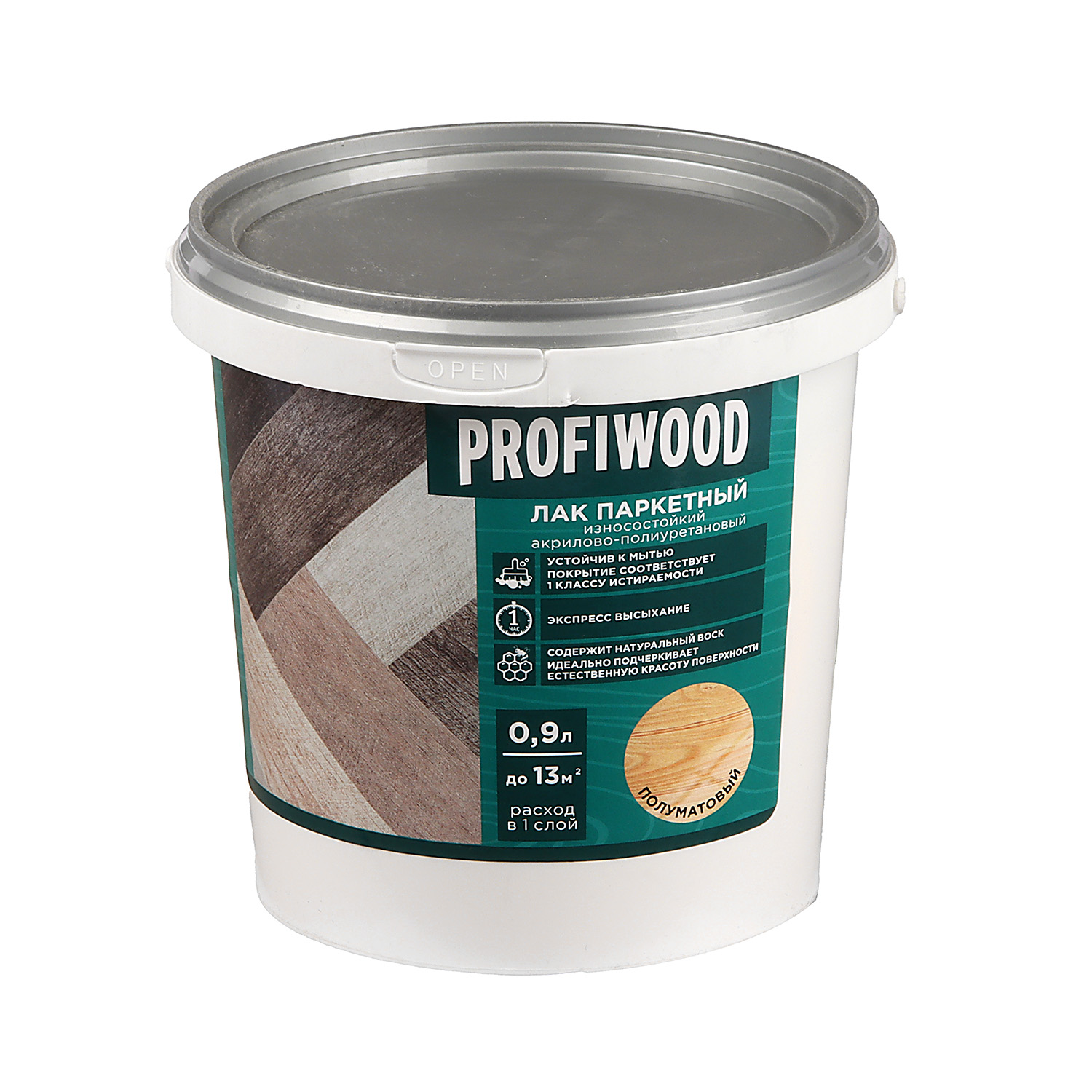 Лак акрилово-полиуретановый паркетный полуматовый 0,9 кг PROFIWOOD *1/6/336