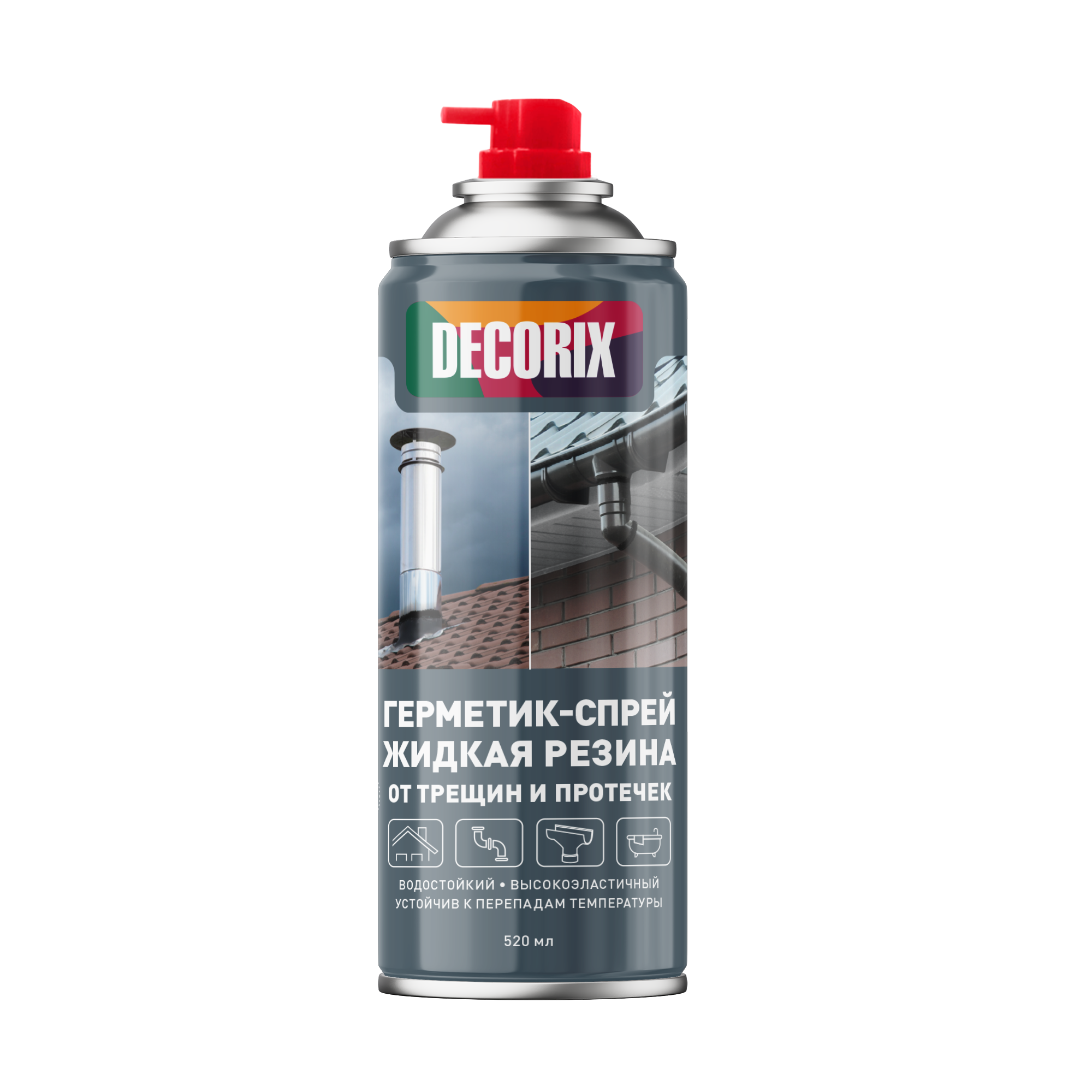Герметик-спрей DECORIX жидкая резина, черный — аэрозольное средство на основе модифицированного битума для устранения протечек, обработки трещин, стыков, швов в кровле, стенах, трубах и т. д. Образует высокоэластичное однородное водостойкое покрытие. Предупреждает появление ржавчины на металлических поверхностях. Сохраняет свойства при значительном перепаде температур, не растрескивается и не расслаивается. После высыхания может быть окрашен.