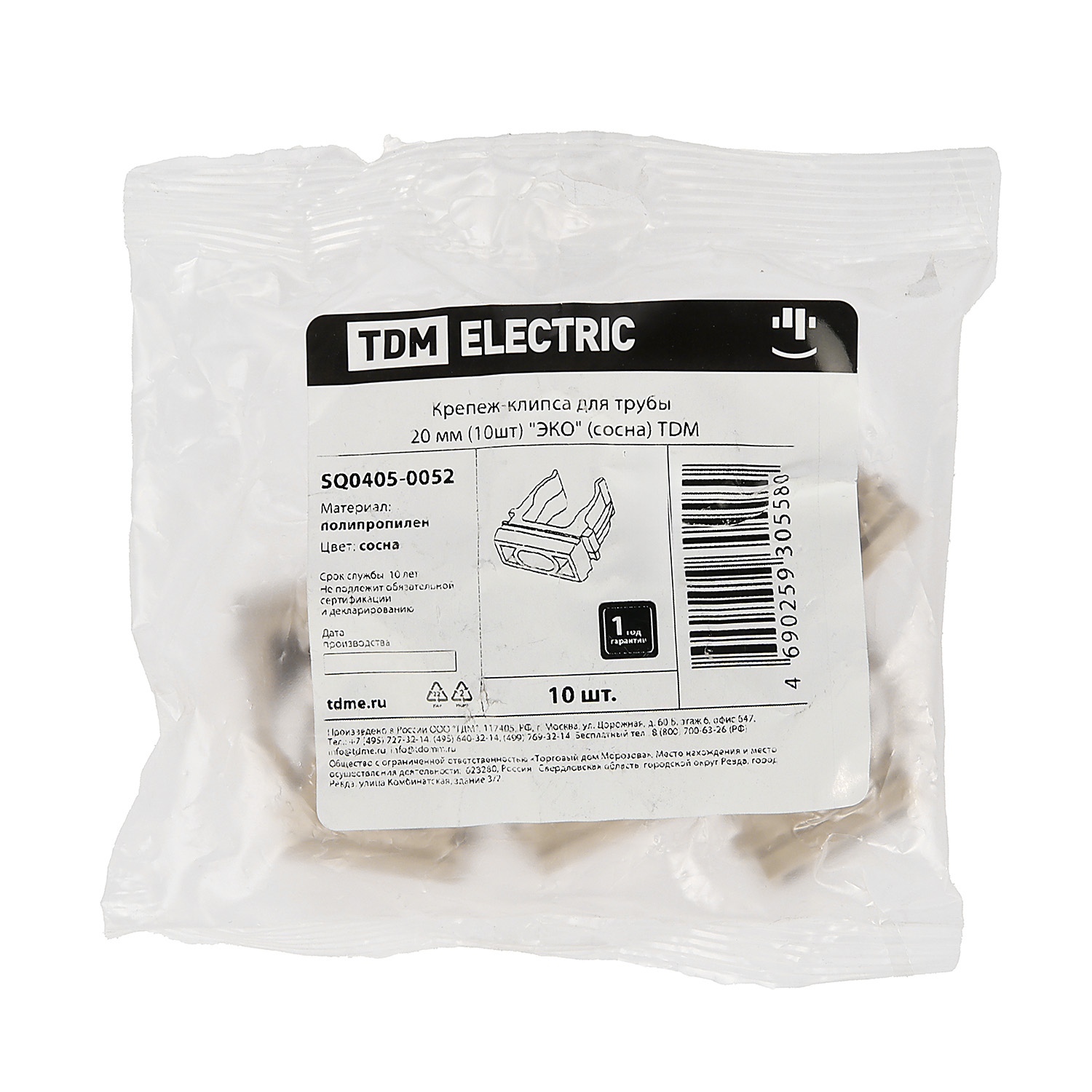 Крепеж-клипса d20мм для трубы "Эко" сосна (упак.10шт) TDM SQ0405-0052 *1/140