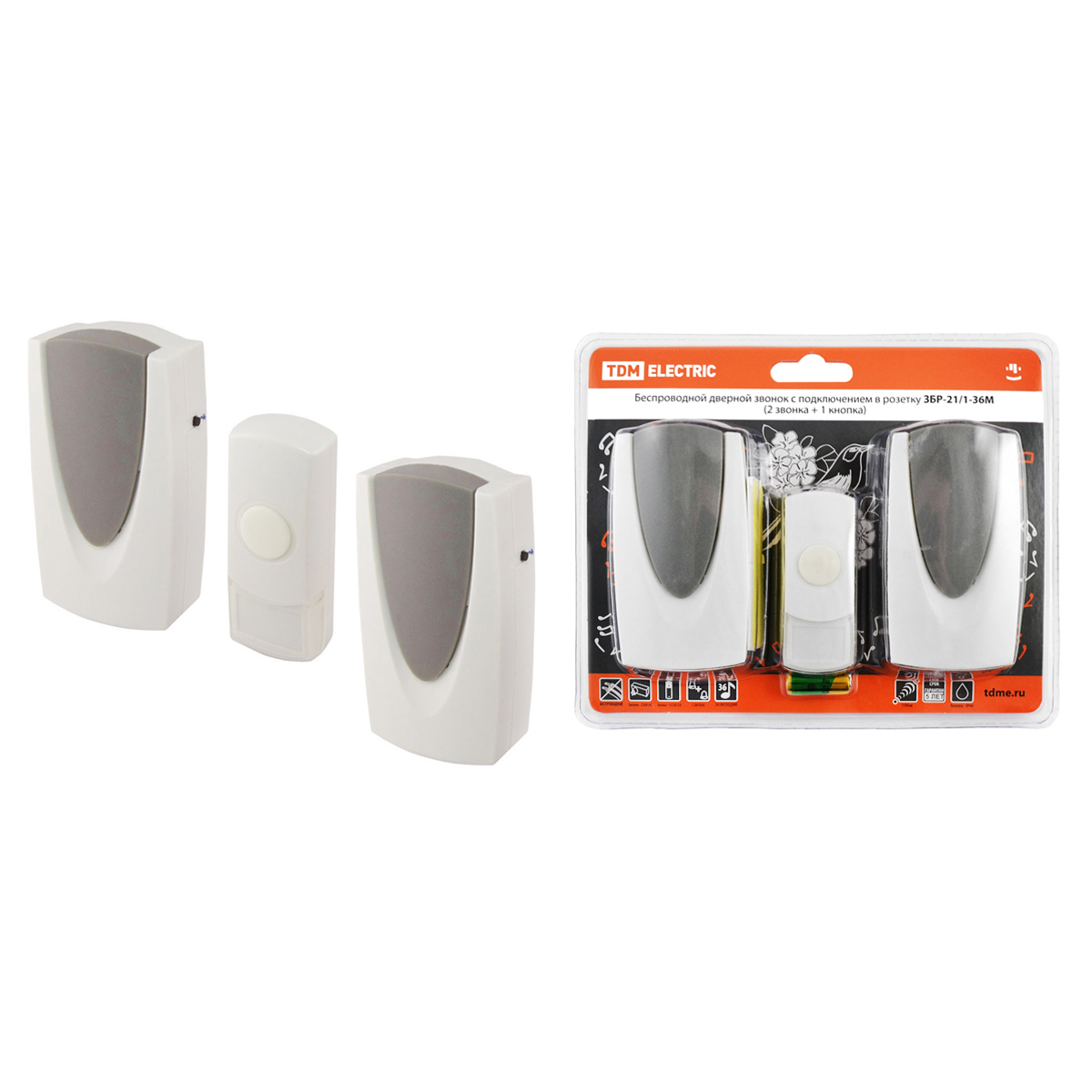Звонок беспров.в розетку ЗБР-21/1-36М (36 мелодий, кнопка IP44, АС 230V) TDM SQ1901-0012 *1