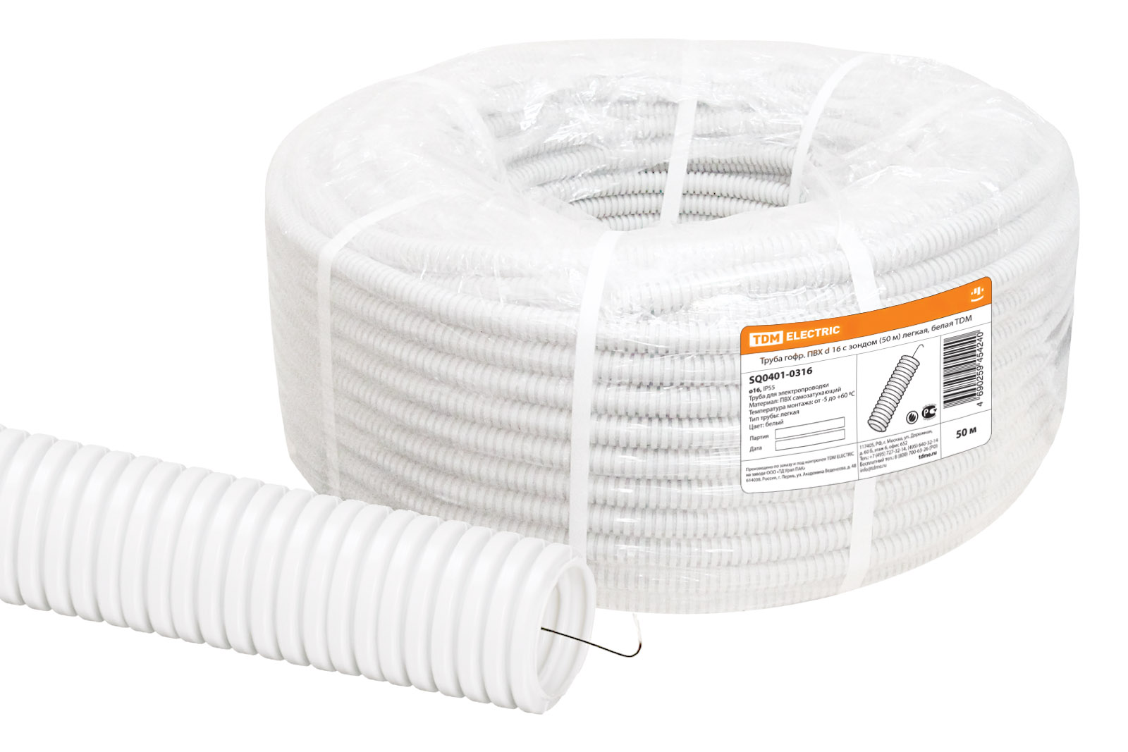 Труба ПВХ гофро с зонд. d16мм(50м) легкая, белая TDM SQ0401-0316 *50