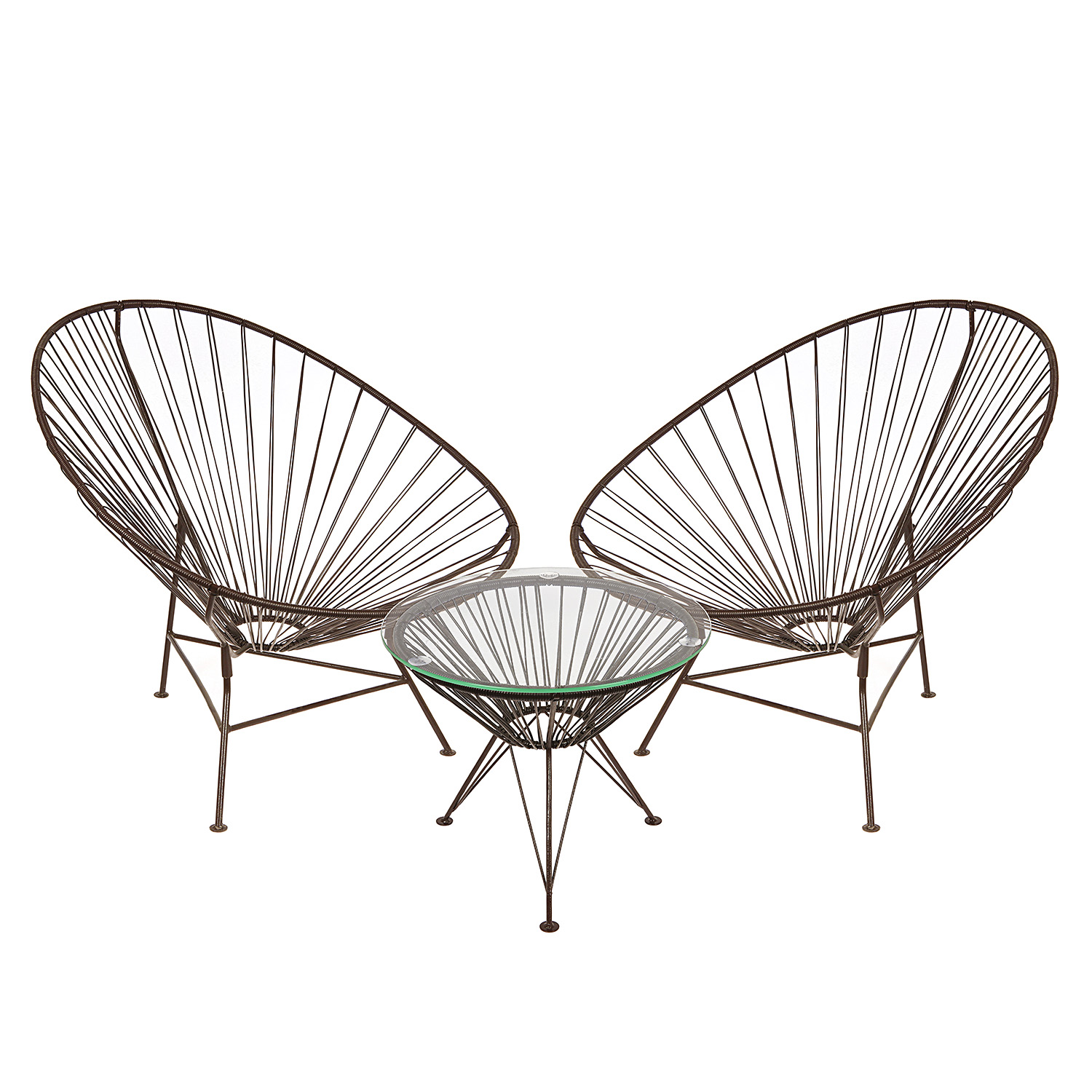 Набор дачной мебели "Ракушка" стол (стекло) 50 см + 2 кресла (до 120 кг), полиротанг коричневый *1