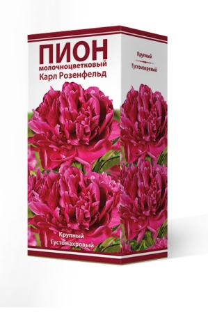 Пионы – травянистые многолетники с мощными мясистыми корнеклубнями, реже кустарники. Стебли до 100 см высотой. Цветки крупные одиночные, простые, полумахровые, махровые; белые, розовые, красные, реже желтые. Листья крупные рассеченные. «Карл Розенфельд» - высота растения 95 см. Срок цветения среднепоздний. Цветок крупный, малиново-красный, внешние лепестки большие, волнистые. Аромат слабый.