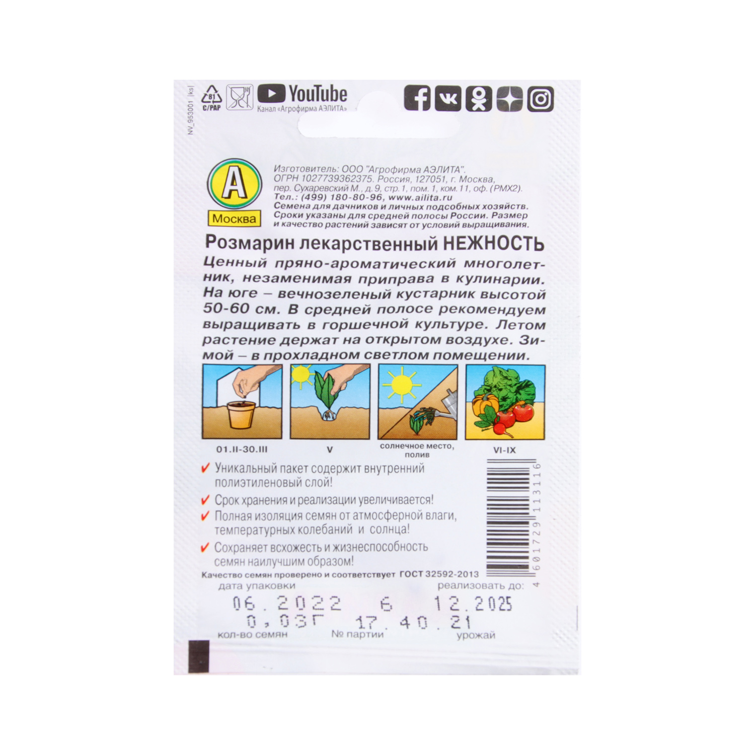 Семена Розмарин Нежность 0,03гр/20шт Аэлита Лидер *10/500
