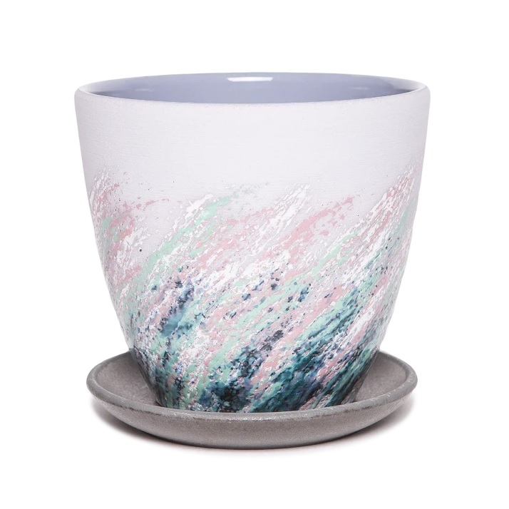 Кашпо керам. Крокус Живопись 1,36л d верха 149мм h133мм с поддоном сиреневый №2 КС-К2-203-54 *9