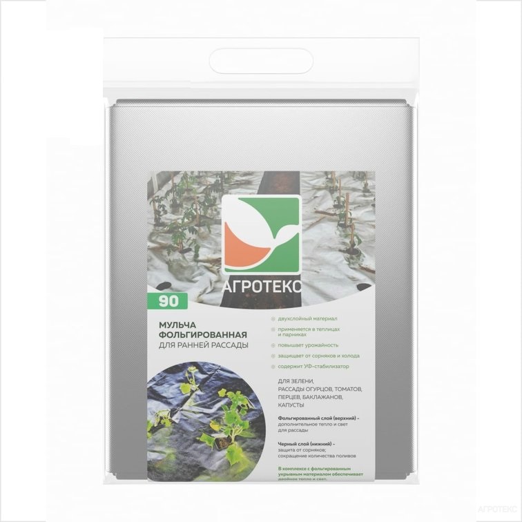 Укрывной материал 2-х слойн.:Фольгир./Черный пл.90г/кв.м, шир.1,6м, дл.5м, в пакете "Агротекс"* 1/25