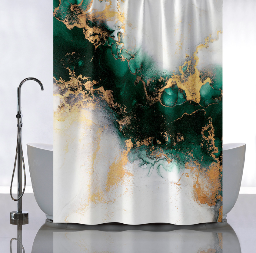 Штора для ванной "Санакс" п/эстер 180*180см "Зеленый мрамор с золотом" без колец 01-112 *1/24