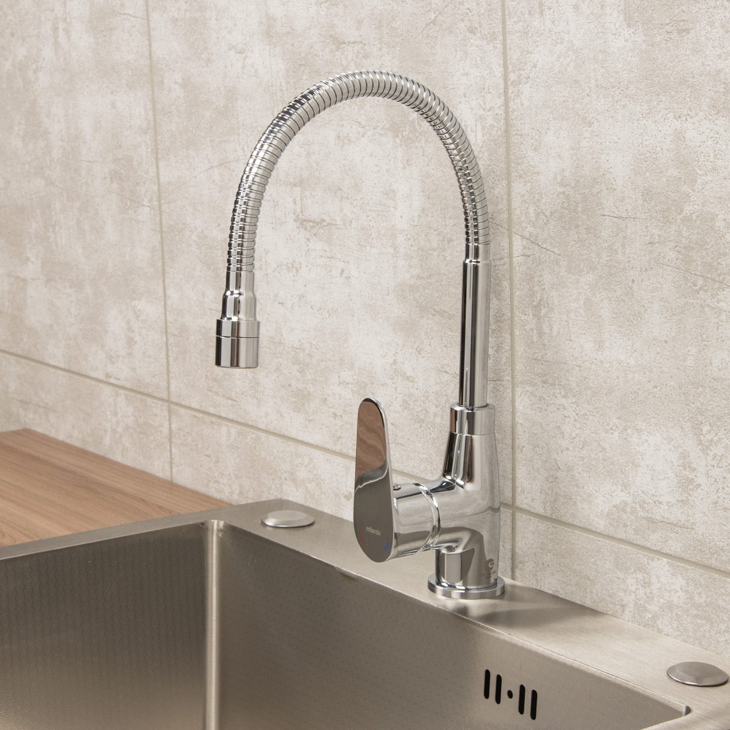 Смеситель для кухни Milardo Meal хром глянцевый, гибкий излив + душевая насадка M07SB2FM05 *1/10