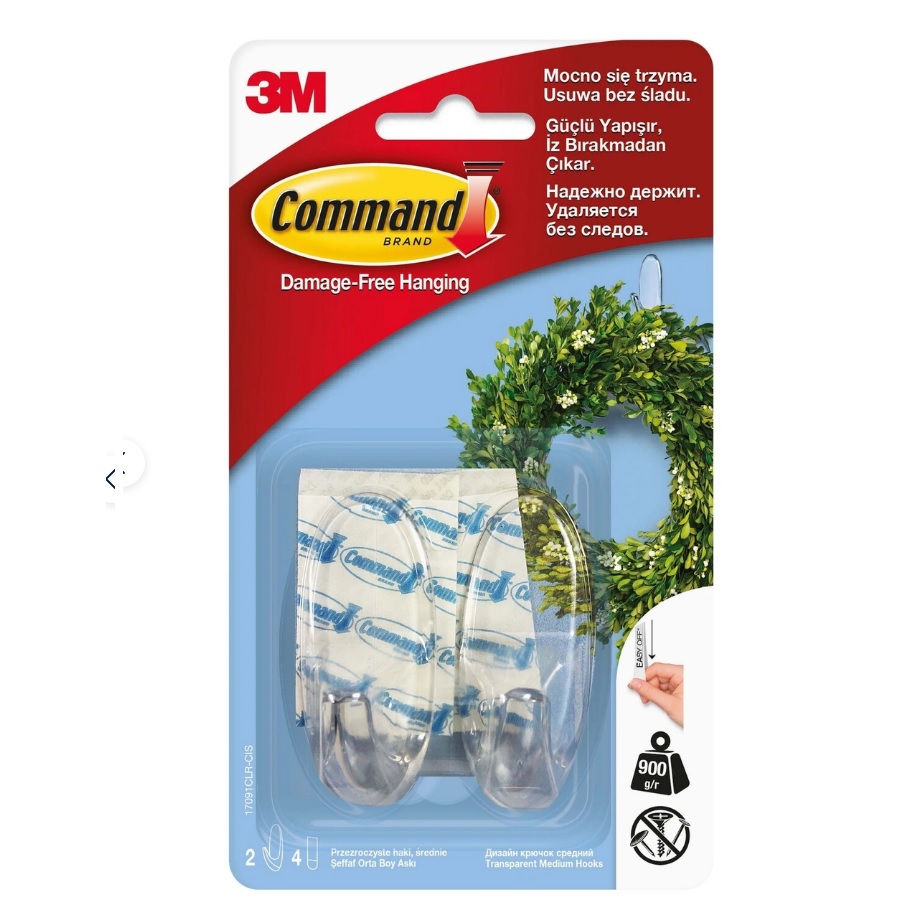Крючки самоклеящиеся пластм. Средний Прозр. Комплект 2шт(+2сменн.кл.пол) 17091CLR Command (3M™)*1/12