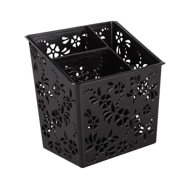 Подставка станет универсальным решением для хранения столовых приборов, расчесок, пультов, канцелярии и других мелочей. Подставка имеет внутреннюю вставку, которая разделяет ее на три части. Интересный дизайн впишется в любой интерьер.