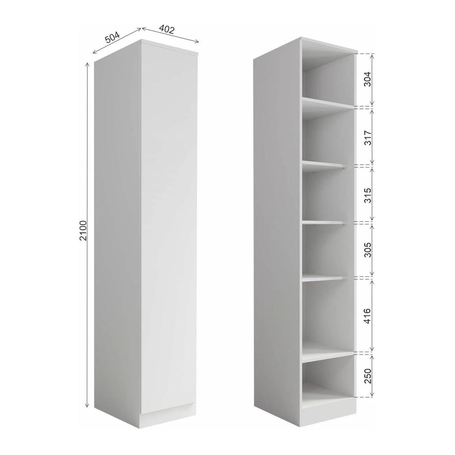 Шкаф-пенал 402х2101х504 мм 33 КОМОДА Мори, белый