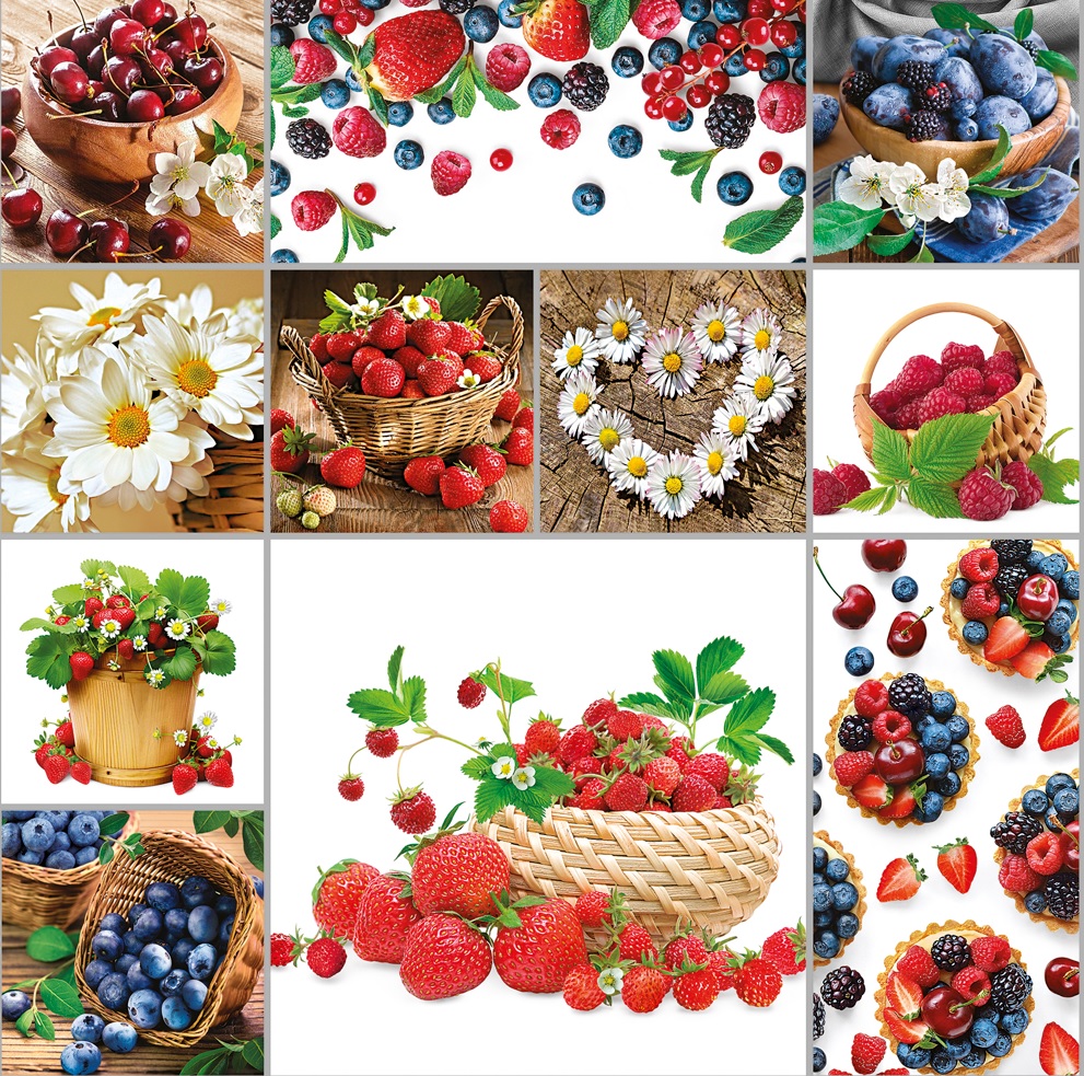 Клеёнка на нетканой основе "Мажор" "Коллаж из ягод и ромашек" на белом шир.1,35м 636/0 "Колорит" *20