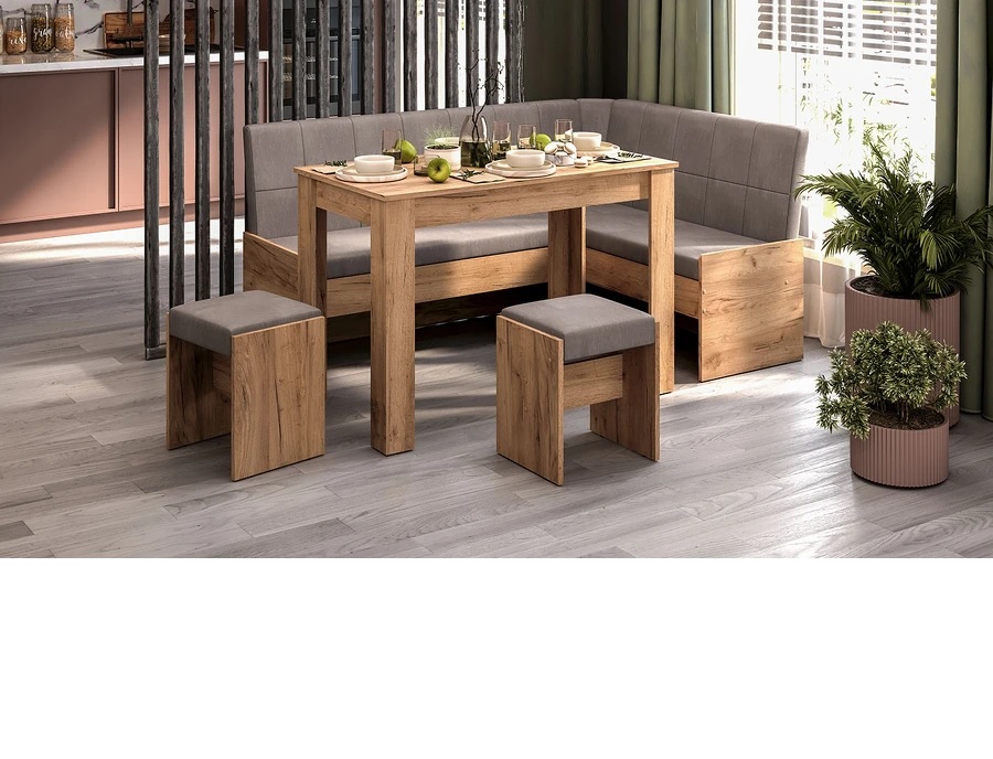 Кухонный уголок Пекин Дуб Крафт золотой/Микровелюр Duna Stone*1