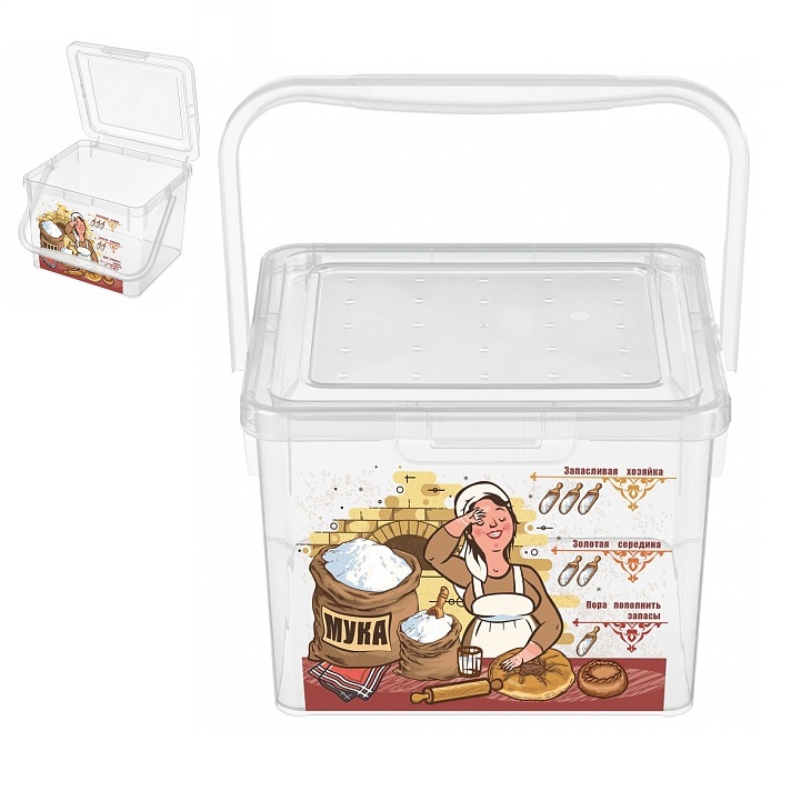 Контейнер д/прод. пластм. 5,3л 235x210x162мм Прозрачный "Мука" арт.433212801"Бытпласт")*1/8