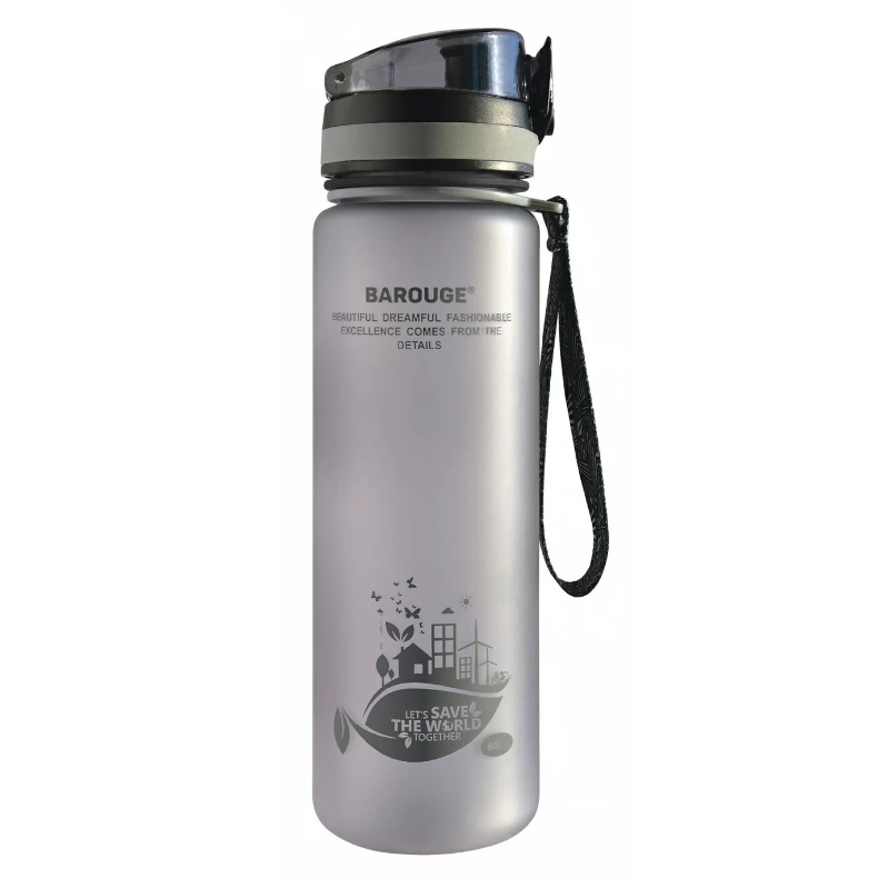 Бутылка д/воды пласт. "Active life" 0,6л с нескольз.покр. Серый BP-915 "Barouge" *1/100