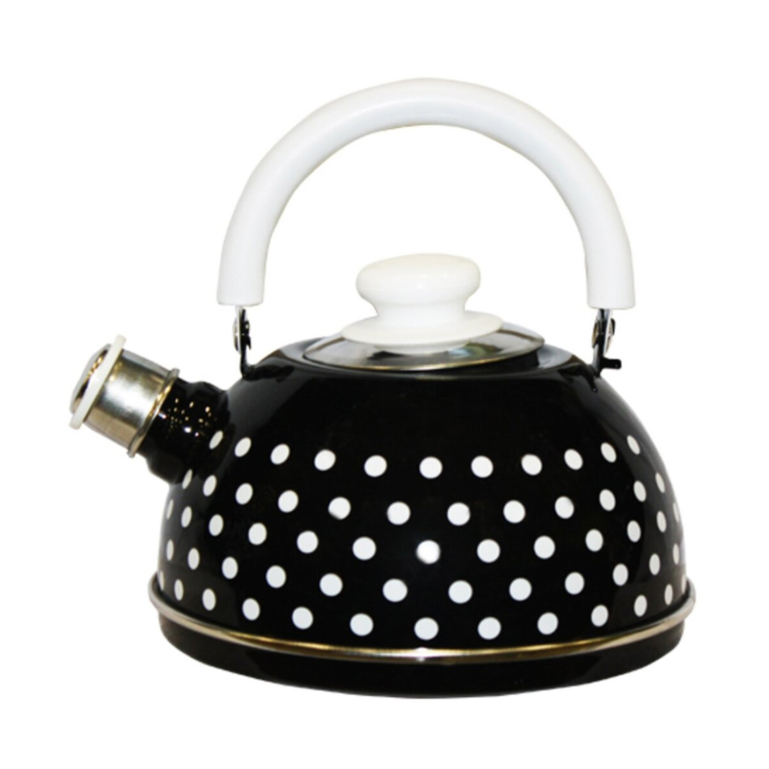 Чайник эмалированный со свистком 2,5л декор "Горох" Черный T04/25/02/27/H03 *1/4