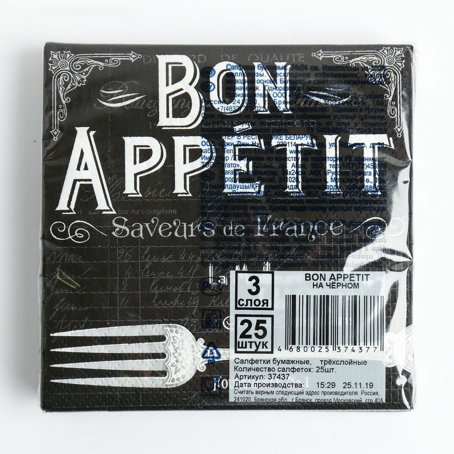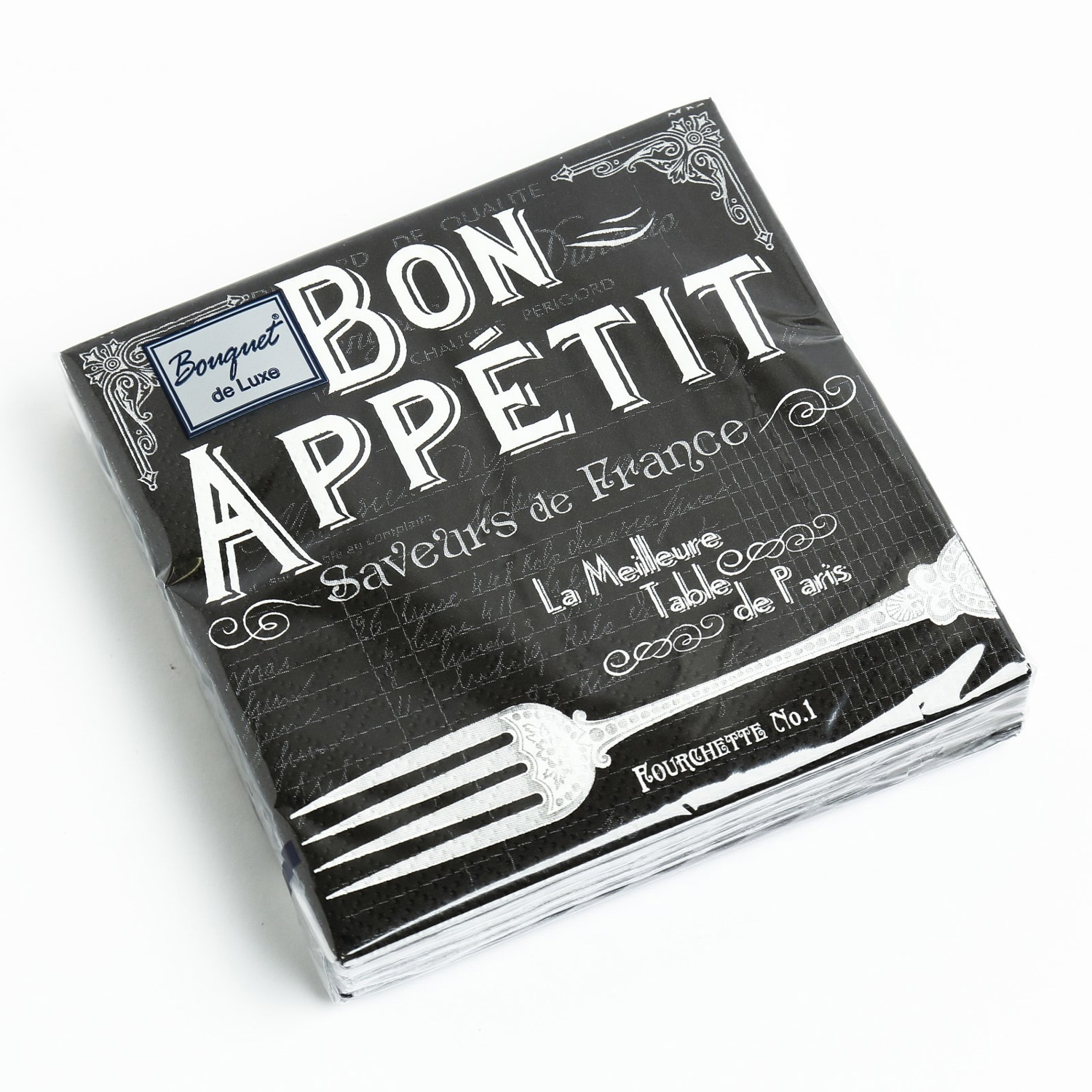 Салфетки бумажные Bouquet de Luxe Бон Аппетит на черном 24*24см