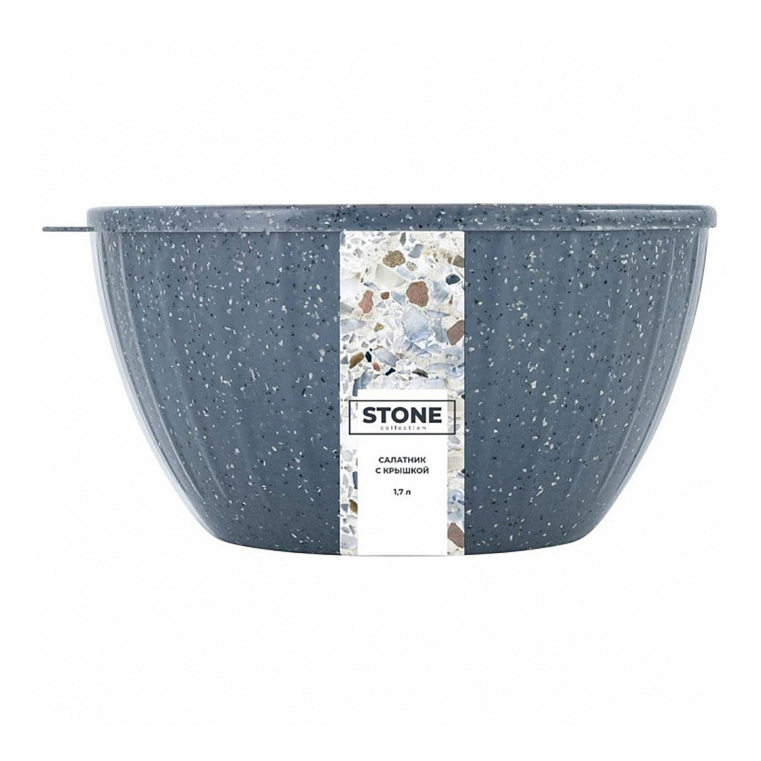 Салатник пластм. "STONE" 1,7л d182мм с крышкой Темный камень SE186611026 ("Sugar Spice") *1/18