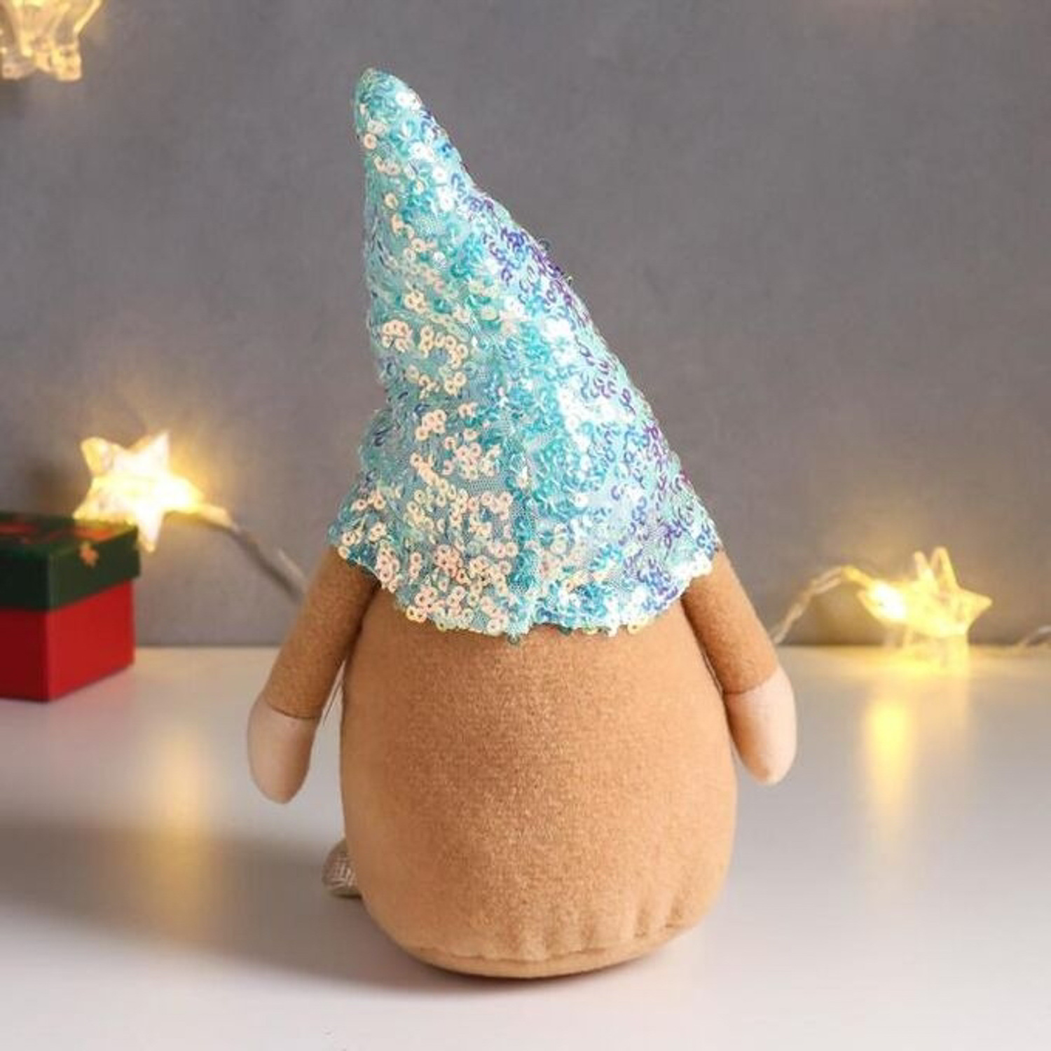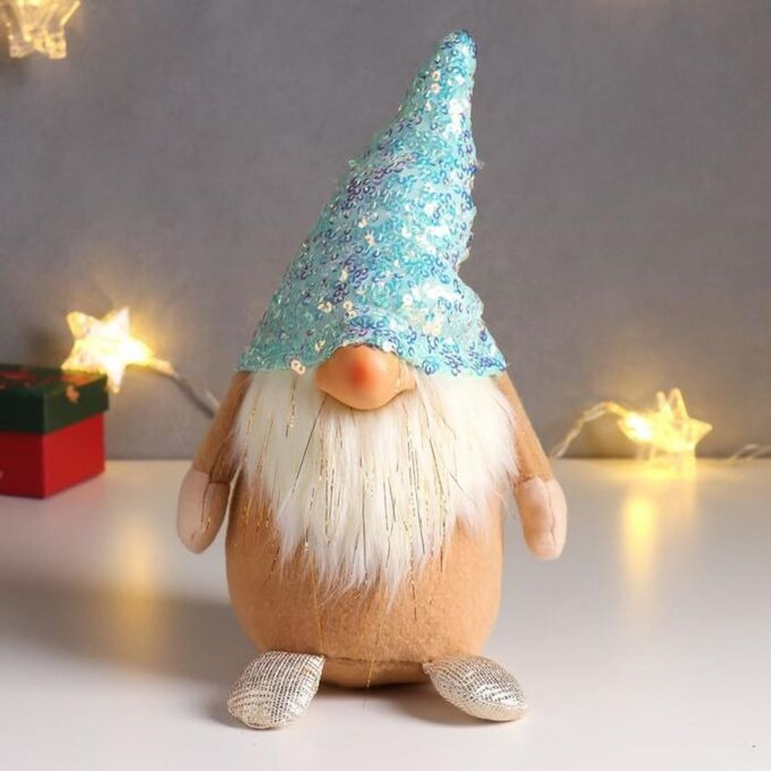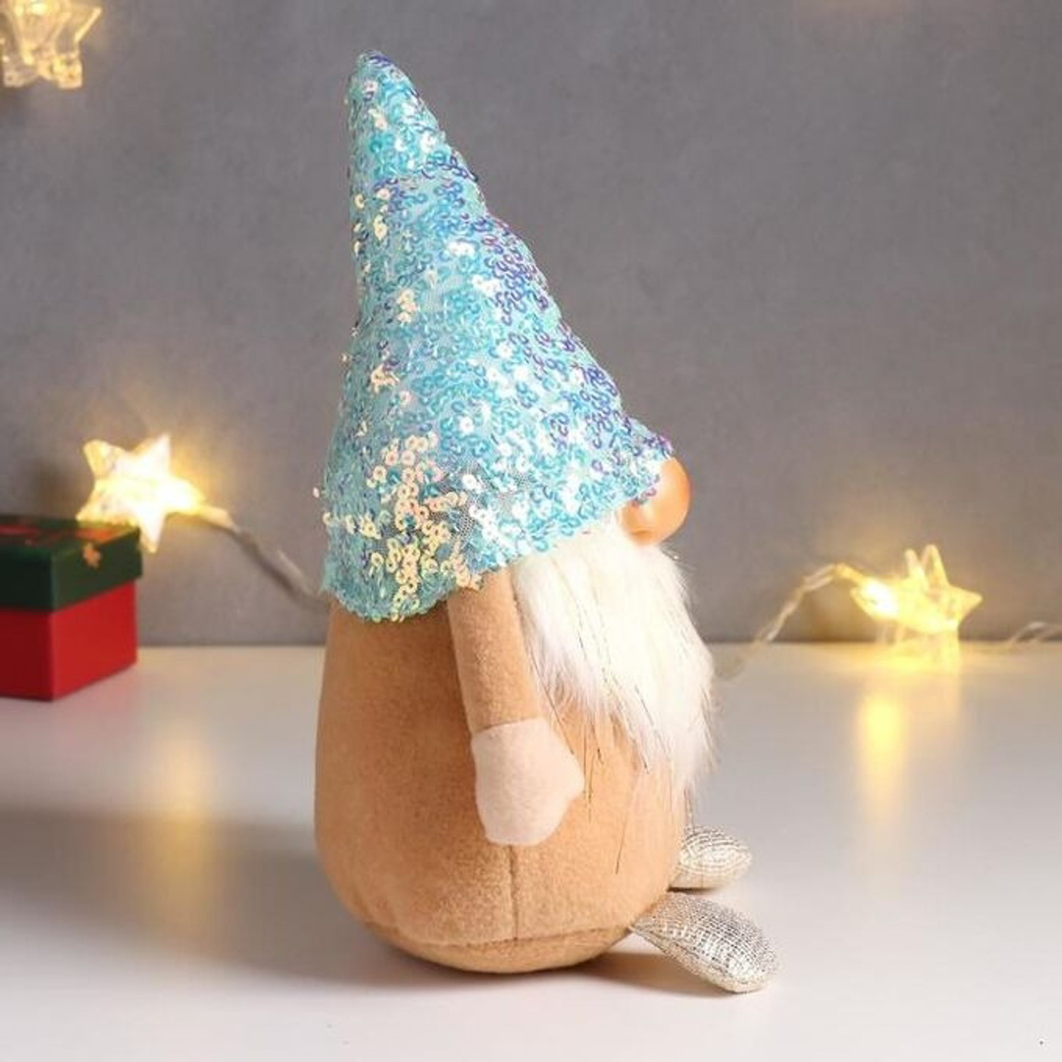 Кукла интерьерная "Дед Мороз в бело-перламутровом колпаке с пайетками" 33х14х17 см 6260136