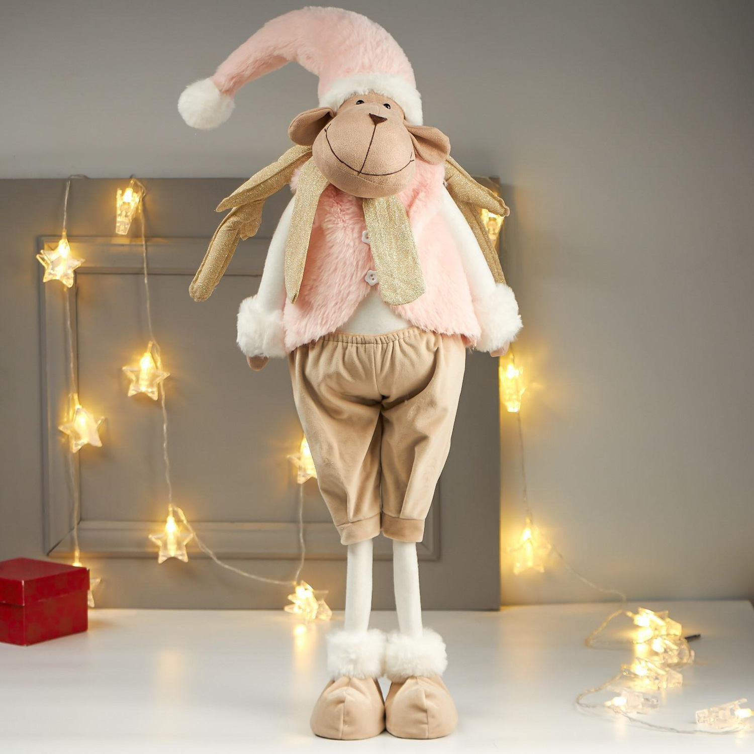 яяяКукла интерьерная "Лосик в розовом меховом жилете" 85х15х27 см 4822649