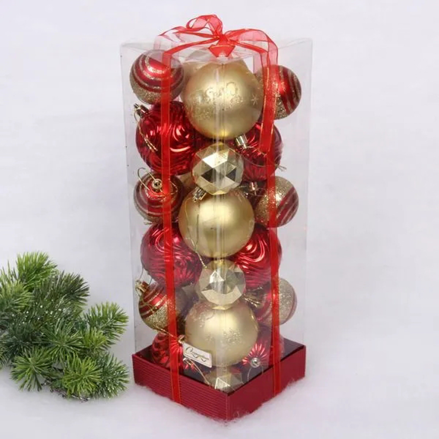 Набор шаров "Winter miracle" 7 см + 5 см (24 предмета), Красный/Золото