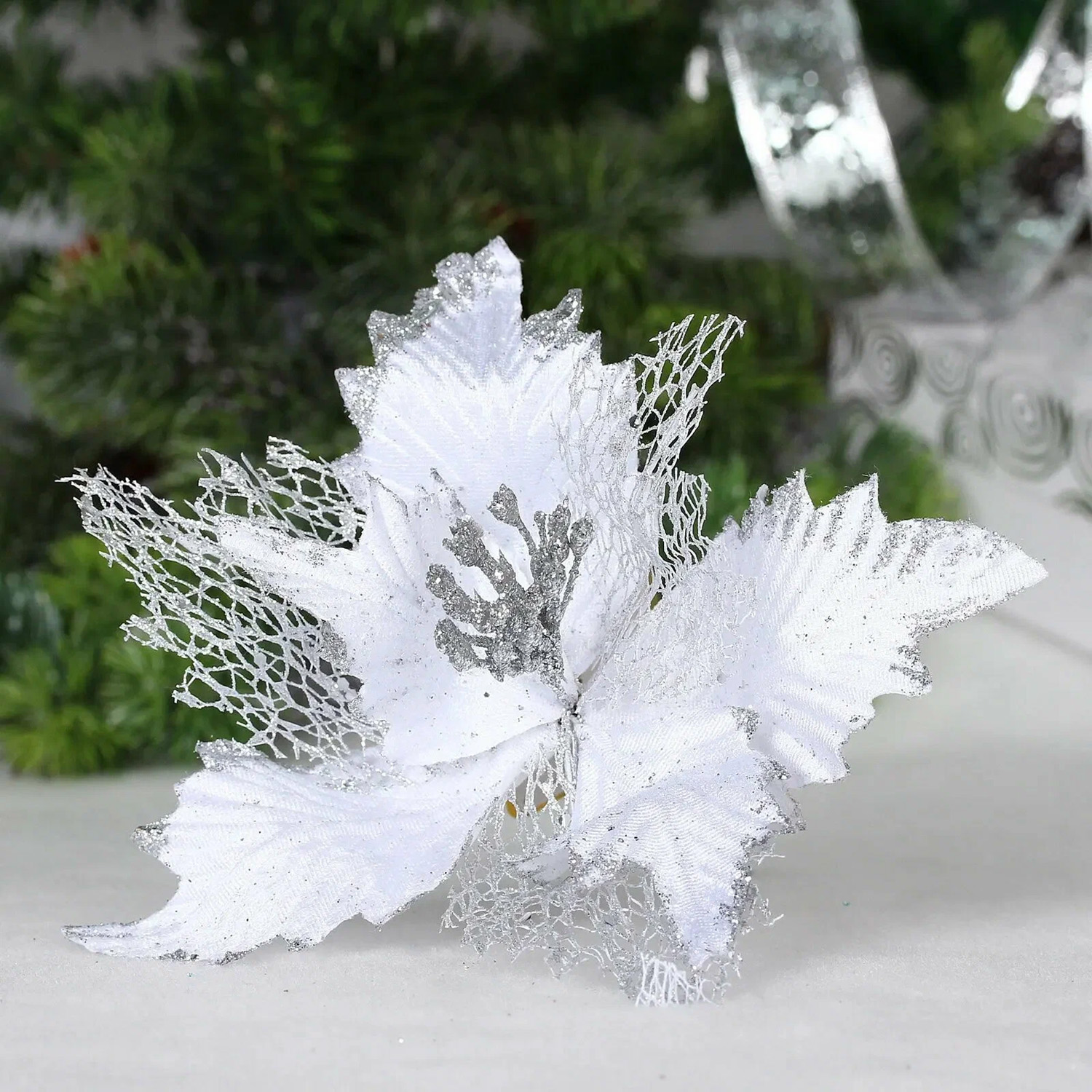 Бант на ёлку "Серебряный шик" 6 см (набор 12 шт)