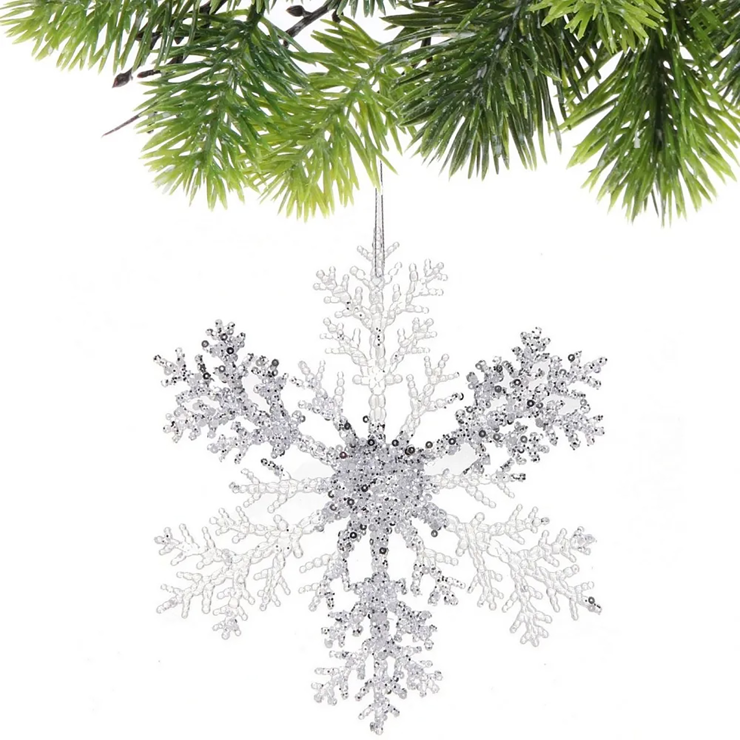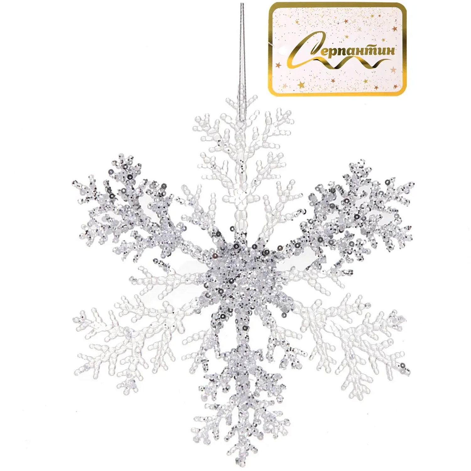 Подвеска новогодняя "Мерцающая снежинка" 21 см, Белый