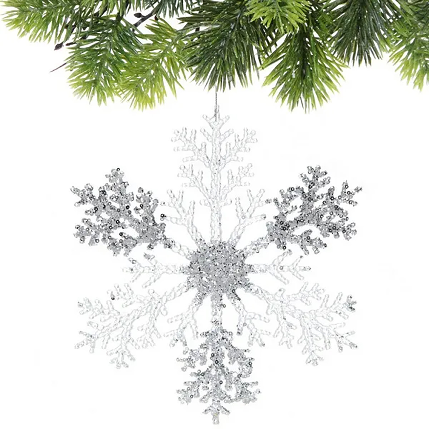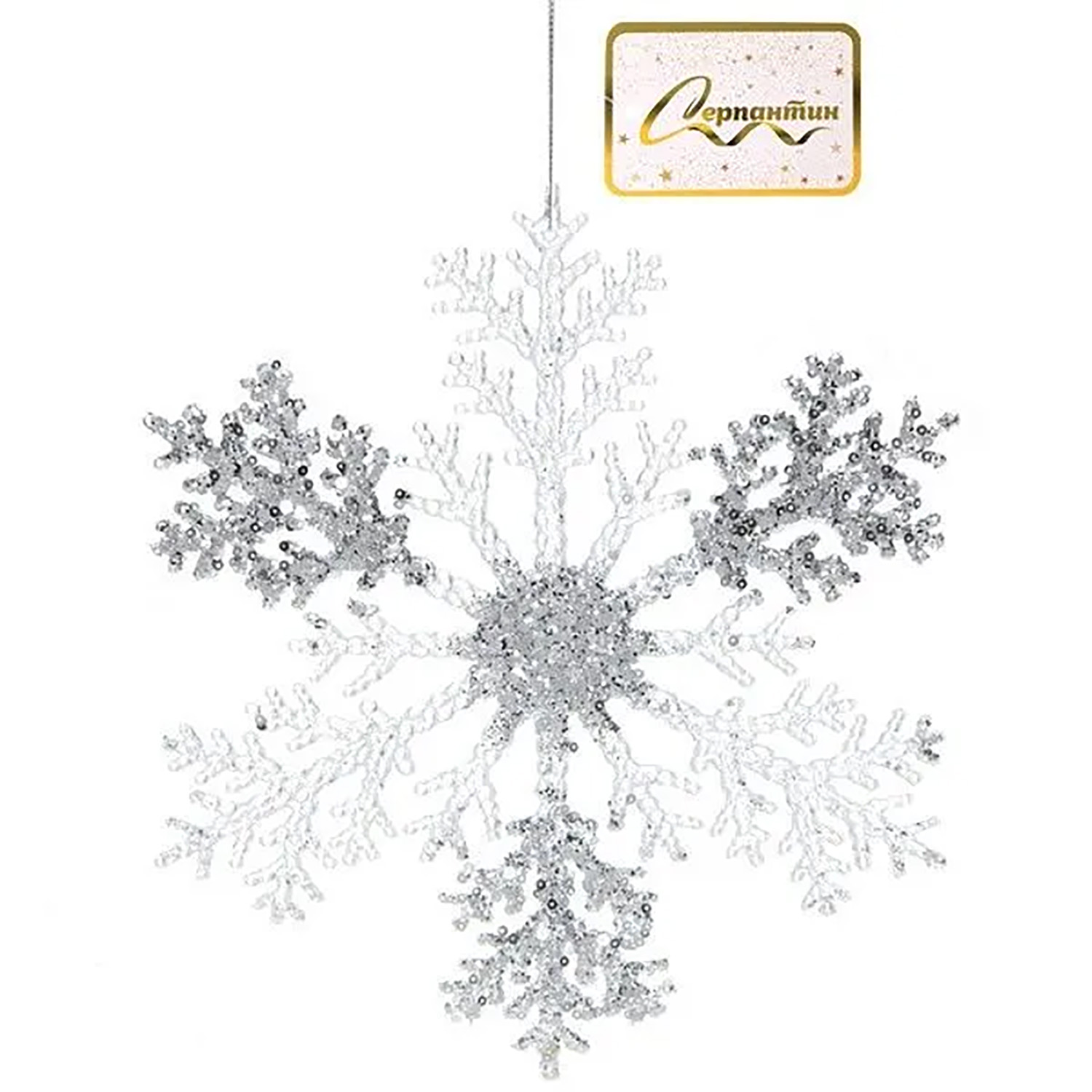Подвеска новогодняя "Мерцающая снежинка" 26 см, Белый
