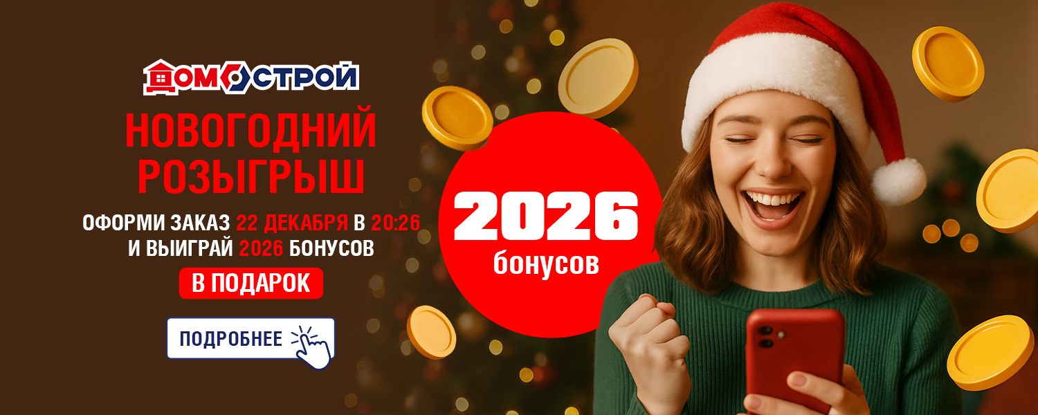 Новогодний розыгрыш от ДомоСтрой. Пусть Новый год начнётся с приятных сюрпризов! Мы разыгрываем 2026 бонусов среди покупателей на сайте — это ваш шанс сделать праздничные покупки ещё выгоднее.