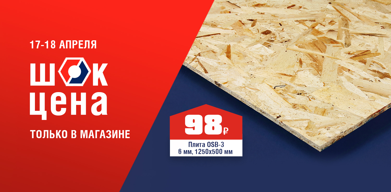 Плита OSB толщиной 6 мм — один лист на десяток задач! Не боится воды, держит форму, легко монтируется. Подходит для стен, полов, кровли, опалубки — идеальный выбор для надёжного ремонта. 17 и 18 апреля в розничных магазинах ДомоСтрой не пропустите ШОК-цену: