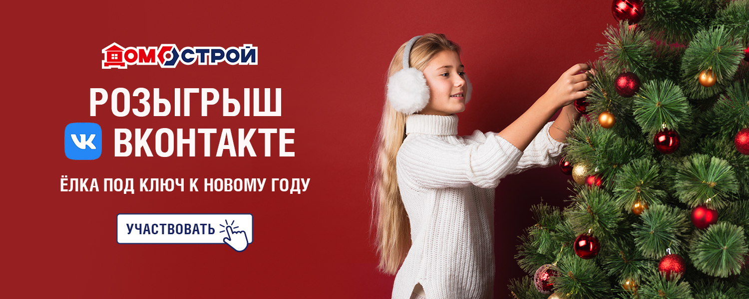 ДомоСтрой объявляет розыгрыш ёлки «под ключ» ВКонтакте. Участвуйте в конкурсе и выигрывайте готовый комплект из искусственной ели (арт. АХ815), гирлянды (арт. ЕЗ951) и набора шаров (арт. ИЧ375).